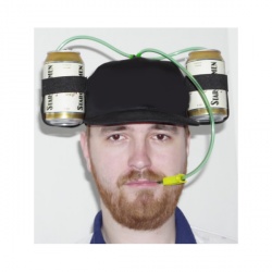 Dva gumové držáky na této čepici Vám zaručí pohodlí u televize! Stačí do nich umístit dvě plechovky s pivem a hadičkou už pak jen nasávat a užívat si.