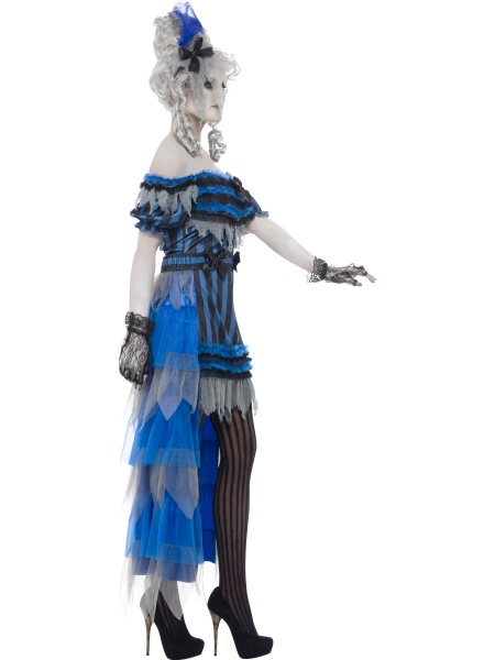 Kostým mrtvé tanečnice se skládá z černo-modrých šatů a zdobené čelenky do vlasů.