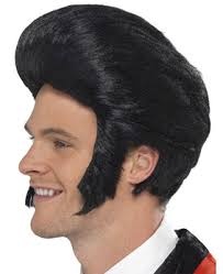 Parádní pánská paruka s černými natupírovanými vlasy a kotletami.