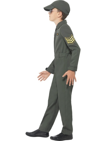 Výborným kostýmem pro vašeho malého chlapce je tento kostým vojenského pilota, ve kterém může hned vyrazit na karneval! Skládá se z kombinézy s nášivkami, opasku a čepice.